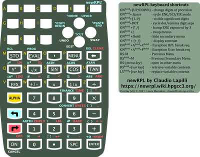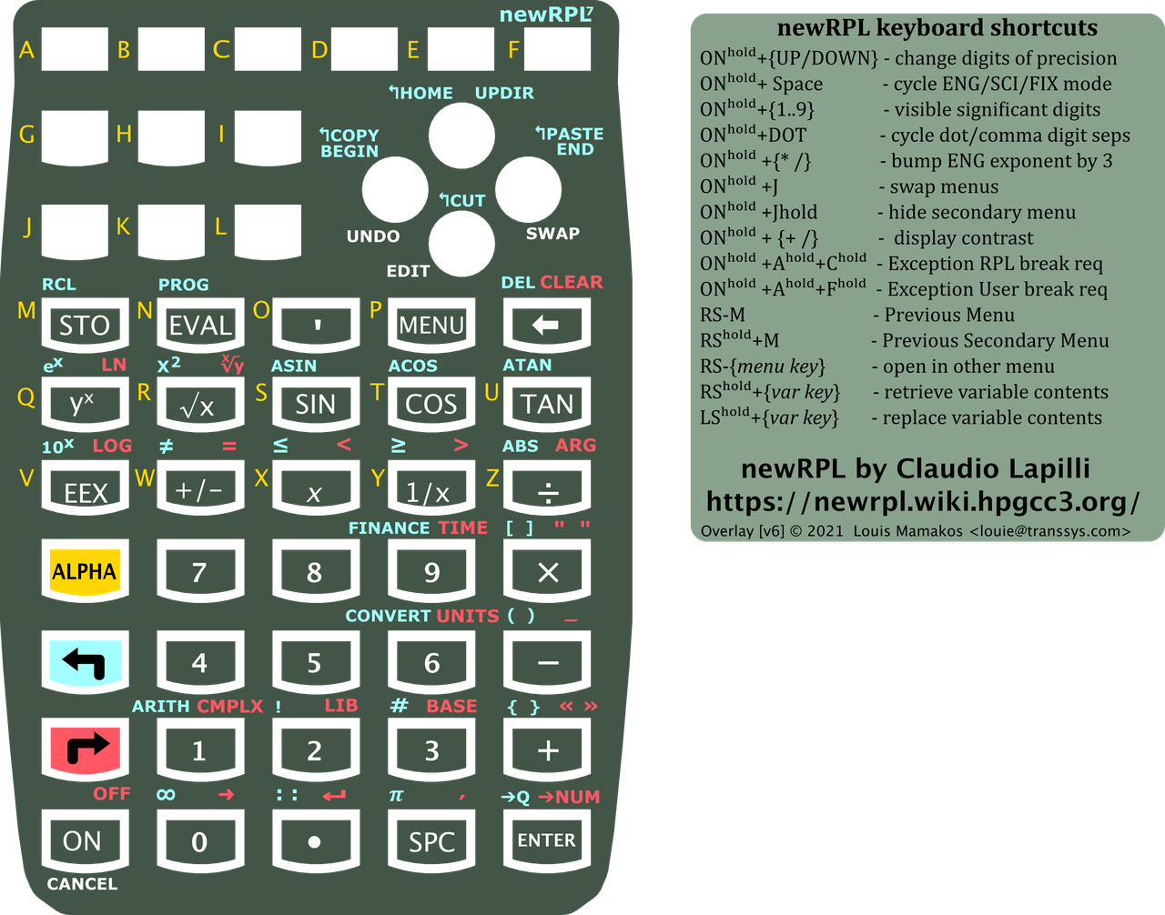 I've incorporated some suggestions in the thread in the overlay. I've also added another label intended to be stuck on the back of the calculator, sized to fit in the shallow recess that has the serial number sticker. This mostly contains the various ON-hold key combinations that may not be used as frequently, but are helpful.