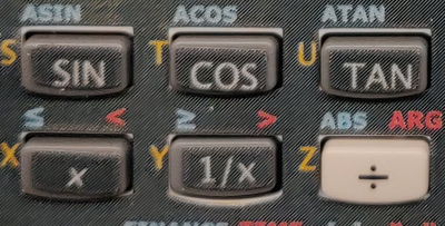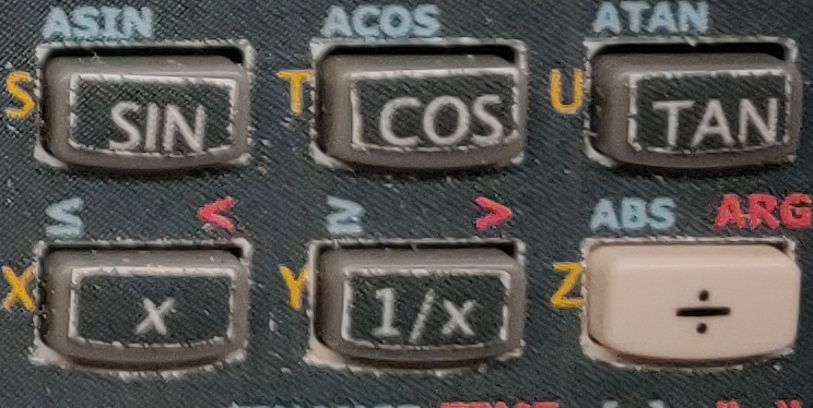 This leaves the whole of the numeric keypad original, and the arithmetic keys. I also didn't bother to label the SPC key, which on the HP 39gs has that "(-)" legend on it.